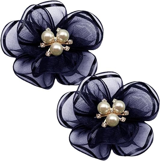 2pc Pearl Flowers Shoe Clips (Navy)