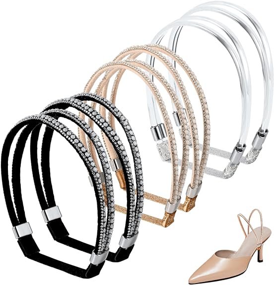 3 pairs of detachable shoe straps in champagne color, black and transparent, and 6 pairs of stable stickers.