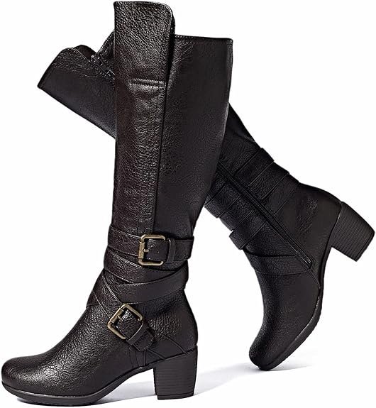 Chunky Heel Knee High Boots (Dark Brown)