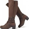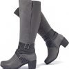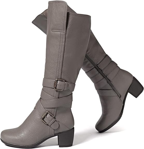 Chunky Heel Knee High Boots (Taupe)
