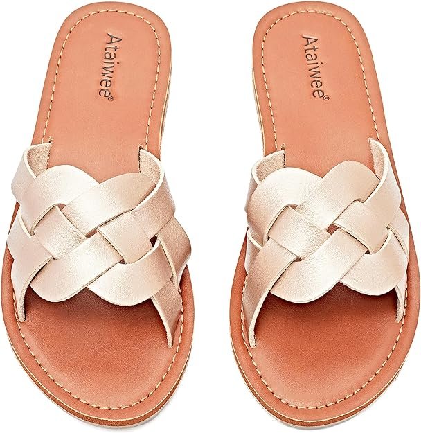 Womens Flat Slide Sandals (Gold)